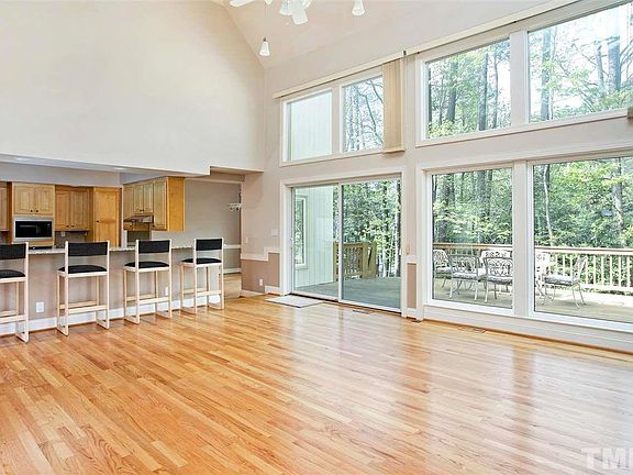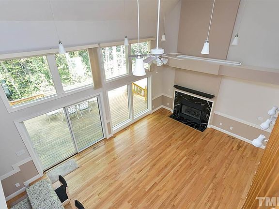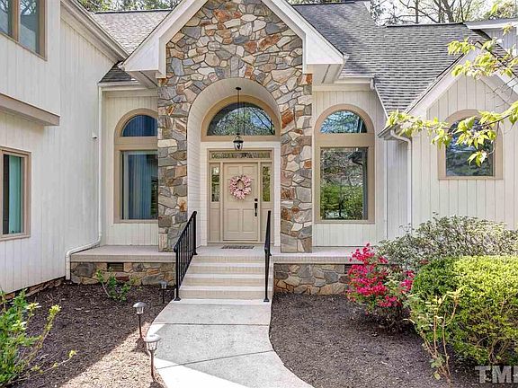 Don't miss this impeccably maintained contemporary home on a culdesac lot in popular Lochmere golf community. 6 BR/4.5 BA + bonus, has 2 first floor bedrooms. This light & open floor plan w/cathedral ceilings is perfect for entertaining. Lots of updates; new roof, carpet, paint, stainless appliances, tankless water heater, refinished hardwoods, replaced HVAC. Excellent location; one block from Lochmere lake & dock, the swim and tennis club & parks. Easy commute to downtown Raleigh & NC State.