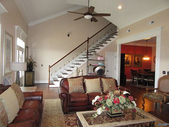This beatiful townhome has it all with hardwood and tile flooring, granite countertops, soaring ceilings, custom cabinets, gorgeous trim work, sprinkler system, two car garage, gas log fireplace and sunroom. Master is separated with glamour bath and two huge bedrooms on the upper floor. You'll love the extra closet space and convenience to I-65, Madison, Huntsville, Redstone Arsenal and shopping. HOA covers yard and common ground maintenance. You'll love this low maintenance livestyle!! Call for your appoinment to view this wonderful property today!!!