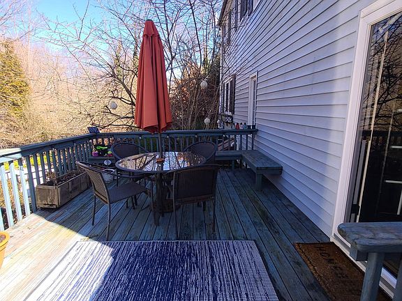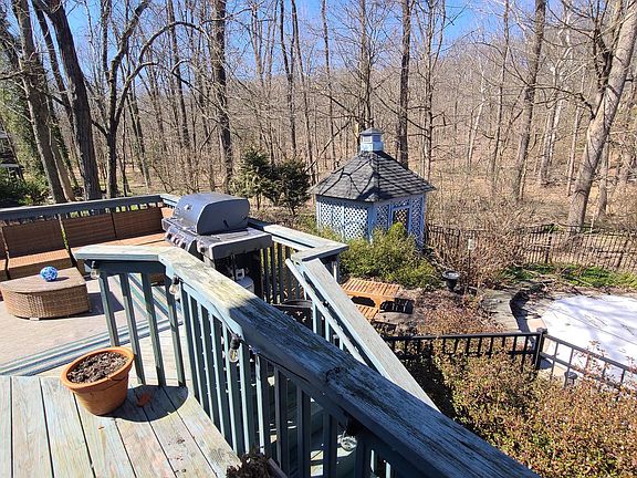 Beautiful farmhouse-style home with exposed beams and wide plank floors located just 15 minutes from Princeton. This charming home features a modern eat-in kitchen complete with a stone wood-burning fireplace, perfect for cozy dinners on chilly nights. The dishwasher is less than a year old. Kitchen and family room lighting were updated in 2020. The family room, which used to be a formal dining room, is spacious and perfect for entertaining guests with a built-in custom bar. The half-bath was updated in 2020. The large living room provides more space for gatherings and entertaining. Two staircases provide flexibility to use the three good-sized bedrooms, which provide plenty of space for a family or guests, while the high ceiling basement offers additional storage and laundry. Enjoy the outdoors on the two-level deck overlooking the picturesque one-acre lot complete with an inground pool, shed, and gazebo. This tranquil setting is perfect for relaxation or outdoor entertaining. Commuting is a breeze with easy access to nearby commuter routes. Only 15 minutes from downtown Princeton. Don't miss the opportunity to make this delighful house your own!