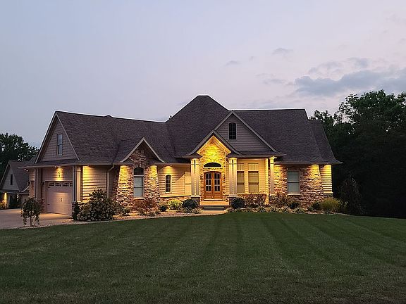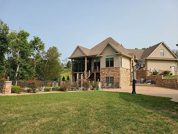 Beautiful craftsman style single family home in a quiet area of a golf community. Main level features a spacious custom kitchen, master suite with balcony access, large bath, dual walk in closets, laundry room, two more bedrooms separated by a Jack & Jill bathroom, large finished room over the garage with a full bath. Walk out basement is fully finished with mother-in-law suite and includes a complete kitchen that will fit a large table, large walk in closet and full bath. Basement also features area for entertaining, home theater, craft room, walk in vault, large laundry room and an additional full bath. Beautiful custom heated pool with waterfall and is well landscaped. Three car detached garage features a full bath and a finished room over the garage.