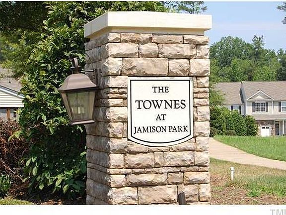 Beautiful townhome, one of only 40 units in exclusive Jamison Park. Original owners in excellent condition. Hardwoods on main floor, private bath in each bedroom, 42" maple cabinets, private patio and screened porch backs up to green space, Finished basement adds 3rd bed/bath or bonus room, TONS of basement storage incuding a work shop. Please verify schools at www.wcpss.net.