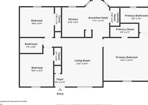 COMING SOON Maymont Homes is committed to clear and upfront pricing. In addition to the advertised rent, residents may have monthly fees, including a $10.95 utility management fee, a $25.00 wastewater fee for homes on septic systems, and an amenity fee for homes with smart home technology, valet trash, or other community amenities. This does not include utilities or optional fees, including but not limited to pet fees and renter's insurance. Welcome to this inviting 3 bedroom, 2 bathroom home in Thomasville, North Carolina. Featuring a private driveway, a covered front porch, and classic black shutters, this home offers timeless curb appeal and a comfortable layout perfect for everyday living. Step inside to find beautiful oak hardwood floors flowing through the main living area. The living room is bright and cozy, with a ceiling fan and ample space to arrange your furniture and decor. Large windows throughout the home provide abundant natural light, creating a warm and welcoming atmosphere. The eat-in kitchen offers oak cabinetry, black appliances, a window over the sink, and generous storage and counter space. Bay windows in the dining area provide a perfect spot for a kitchen table, and a nearby door leads directly to the back deck for convenient indoor-outdoor living. The primary bedroom features luxury vinyl plank flooring, a walk-in closet, and an en-suite bathroom with a shower and tub combination, a window, and a vanity with storage. The two additional bedrooms are well-sized, one with hardwood flooring and the other with LVP, and share a full bathroom that also includes a shower and tub combination. Outside, a spacious deck overlooks a large backyard with open lawn space and a beautiful mature tree. This Thomasville home offers a great blend of charm, function, and location. Schedule your tour today and see everything this home has to offer. *Maymont Homes provides residents with convenient solutions, including simplified utility billing, a flexible rent payment option, and an affordable security deposit alternative. Visit our website or contact us for more details. This information is deemed reliable, but not guaranteed. All measurements are approximate. Actual product and home specifications may vary in dimension or detail. Images are for representational purposes only. Some programs and services may not be available in all market areas. Prices and availability are subject to change without notice. Advertised rent prices do not include the required application fee, the partially refundable reservation fee (due upon application approval), or the mandatory monthly utility management fee (in select market areas.) Residents must maintain renters insurance as specified in their lease. If third-party renters insurance is not provided, residents will be automatically enrolled in our Master Insurance Policy for a fee. Select homes may be located in communities that require a monthly fee for community-specific amenities or services. For complete details, please contact a company leasing representative. Equal Housing Opportunity. This property allows self guided viewing without an appointment. Contact for details.