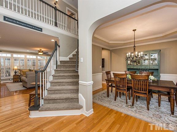 Immaculate, beautifully maintained light & bright home w/open flr plan in Cary! Move-in ready! Grand entry w/staircase, crown molding,new hardwds 1st flr, new carpet 2nd flr. FamilyRm w/custom built-ins, BonusRm, Office/MediaRm, DiningRm w/tray ceiling, Deck,Patio. Gorgeous Kitchen w/island,gas range,bksplsh, BrkfstRm, 2nd staircs. Mstr w/tray ceiling,WIC. 1st flr Guest BR w/fireplc. Tankless H20 htr. Neighborhd pool! Grnwy access,walk to Wht Oak Pk! Close to Hwy55,540,shopping & easy commute to RTP,RDU!