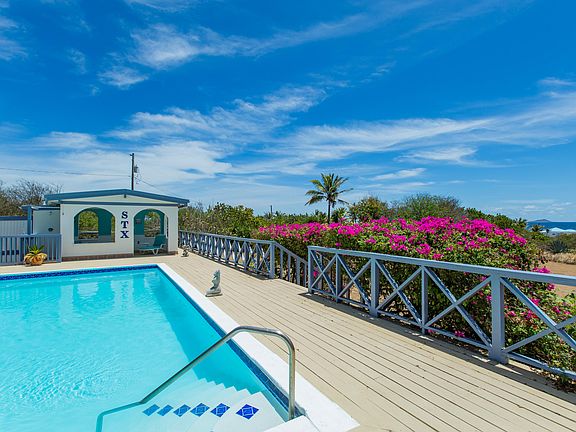 This Caribbean gem is truly one of a kind! The lovely 3 bedroom 2 bath home situated in the Judith's Fancy neighborhood offers privacy, ocean views, amazing outdoor space and beautiful updates throughout. Spend your mornings sipping coffee on the spacious patio or pool deck, cool off each afternoon in the large swimming pool and sip evening cocktails in the cabana that features an outdoor shower and additional bathroom. Inside the home you will find new tile throughout, newly installed windows, several split AC's, a beautifully renovated kitchen with updated appliances, diesel generator and solar with Tesla battery back up! Don't worry about large WAPA bills or power outages with the generator and solar set up.