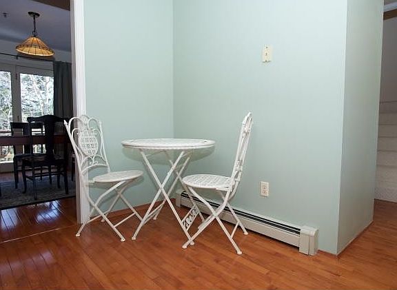 Welcome to this stunning, three-level Townhouse in beautiful Davis Farm. This half-house with one-car garage and mature landscaping sits high up over the Bellamy River. The renovated kitchen has light birch cabinets, quartz countertops, cherry floors, and new black appliances. The formal dining room with wood floors opens to the living room. Glass doors open to the deck overlooking lush greenery, woods and the river. The pretty master suite has a private bath, and the spacious second bedroom and full bath complete the second floor. There's an additional 520 SF in the finished walkout lower level with large windows that could be used as a media room/office, playroom, or guest room. Enjoy new wood flooring, beautiful cabinetry, and updated hardware and lighting. The carpet is in mint condition, and the condo is just lovely. There's nothing to do but move in and enjoy maintenance-free living. The unit offers privacy and lots of pretty, green space. Laundry area in lower level.