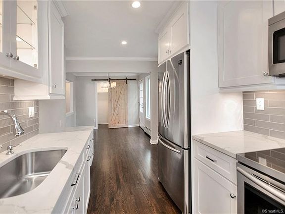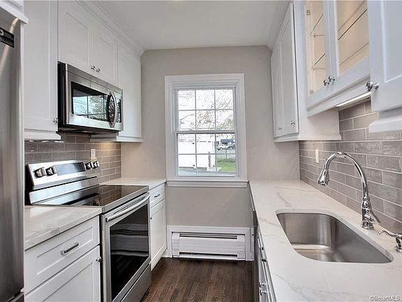 Only a stones throw from all the amenities of Black Rock turnpike youll find Belvoir, a serene and tight knit condo community nestled among the cherry trees. This fully renovated, first floor corner unit is truly something special. Style and functionality were of utmost priority when designing the space. This designer inspired kitchen will wow you with crisp white soft close cabinetry, Calcutta marble look quartz countertops, under cabinet lighting, stainless steel appliances and chrome fixtures. The bathroom is a modern yet timeless space featuring tile imported from Italy. Custom closet doors and a barn door were selected for their functionality and extended height, offering extra storage space throughout. The newly refinished hardwood floors sparkle as they bask in the sunlight pouring through the unit. Situated just 1.7 miles from i95 and 4 miles from the Merritt Parkway makes this a commuters dream. Low common charges ($313/mo) include heat, hot water, and newly installed in- unit washer/dryer. The location is perfect, the unit is stunning; all thats left is for you to move in and enjoy! Parking space #34. Each end parking spot is a visitor spot. Ample street parking.