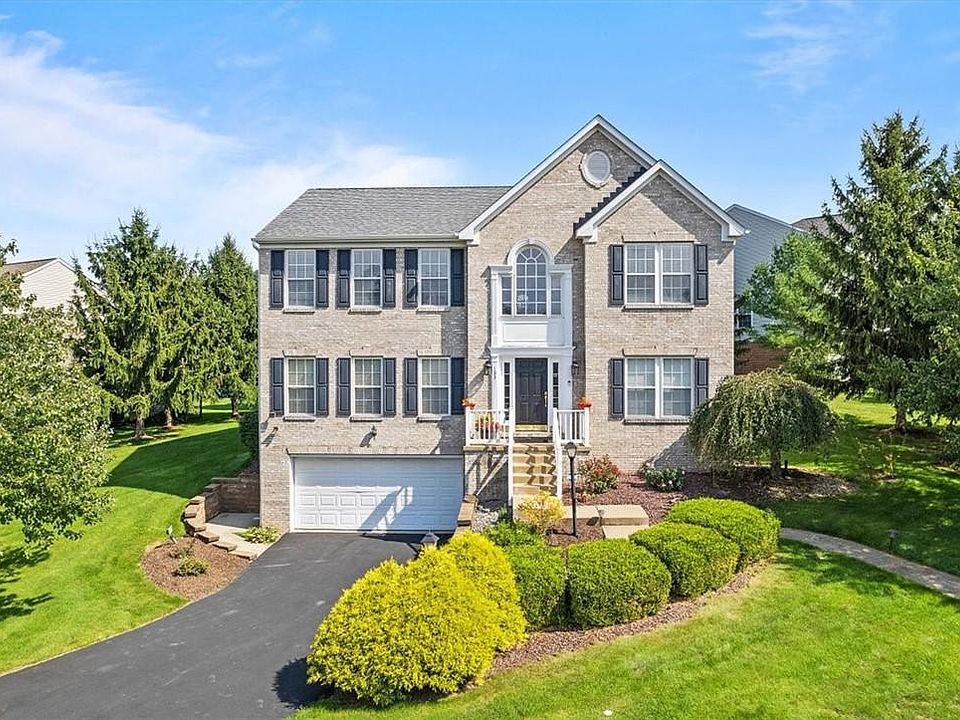 Located in the desirable neighborhood of Adams Ridge in Mars Area School District. Situated on a corner lot, this former model home is packed with upgrades and updates throughout. Two-story Grand Entry, Wood floors throughout the main level, 9 ceilings, crown moulding, lots of windows and great natural light. Home office, first floor laundry. Huge kitchen with SS appliances, walks out to deck which steps out to new stone patio and fire pit area, lined by matured trees offering privacy and tranquility. Huge family room with gas fireplace. Primary Bedroom has vaulted ceilings, TWO walk-in closets, and large en-suite bathroom with double sink top vanity, glass shower, and corner soaking tub. Lower level offers finished game room and huge two car garage. Roof-2019, HVAC- 2021. Sidewalk lined streets and walking paths to community pool and clubhouse, playground, baseball, basketball, tennis. Minutes from I-79, Rt-19, Rt-8, PA Turnpike and much more.