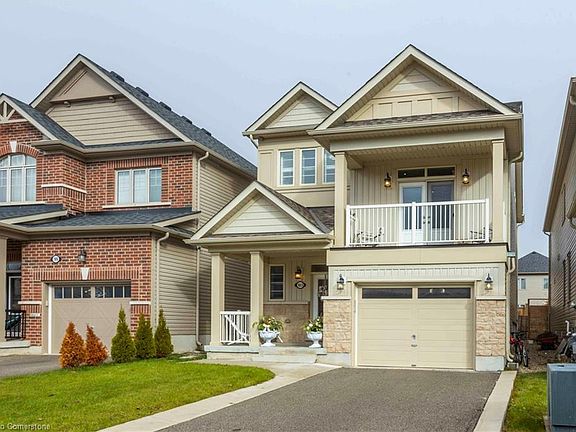 Welcome to Your Dream Home in Fergus! This stunning residence in the desirable Springdale Neighbourhood offers a blend of comfort and modern design. Upon entering, the foyer greets you with a convenient 2-piece bath and hardwood floors that flow throughout the home. The main floor features a separate dining area and living room, along with an open-concept great room warmed by a cozy gas fireplace. The kitchen boasts stainless steel appliances, a center island, built-in cabinets, a quartz countertop, and a bright breakfast area with walkout access to a private balcony. Upstairs, the home continues to impress with 3 spacious bedrooms. The primary bedroom is a retreat, complete with a 5-piece ensuite and a walk-in closet. A sleek 3-piece bathroom serves the additional bedrooms. The spacious basement is ready to bring your vision to life. This prime location is steps from Forfar Park and the Elora Cataract Trailway, with nearby amenities including Groves Hospital, schools, recreational facilities, shopping, dining, and convenient access to major Southern Ontario destinations.