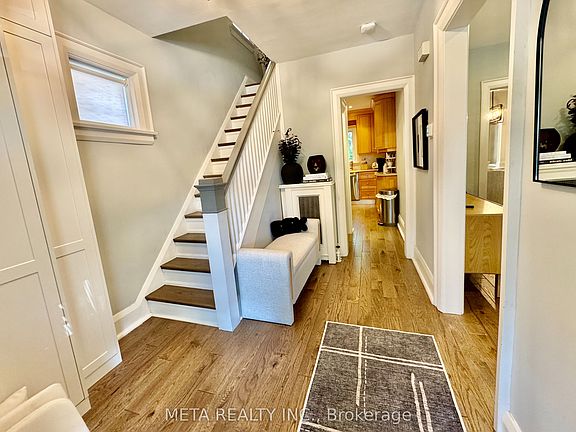 Ravine Lot | Steps to Subway & The Lake | Gardiner Expy | Explore this exquisitely renovated detached home nestled in the lively High Park/Bloor West Village area, just a stone's throw away from Rennie Park, High Park, Bloor West Village shops, and Runnymede Subway Station, offering easy access to the Gardiner for seamless travel to the downtown core. Backing onto a private ravine, this residence offers seasonal glimpses of the city skyline and a tranquil natural setting perfect for unwinding or hosting gatherings. Flooded with natural light, the home boasts high-quality hardwood floors, soothing neutral walls, and adjustable pot lights creating an inviting atmosphere. The main level features a cozy living room with a fireplace, a spacious dining area ideal for family meals, and a sitting space opening to a deck overlooking the secluded backyard. The kitchen is equipped with stainless steel appliances including a fridge, stove, dishwasher, and built-in microwave. Upstairs, the primary bedroom includes a generous size custom closet and serene views of the ravine and skyline. Two additional spacious bedrooms and a modern 4-piece bathroom complete the upper level. The lower level offers heated floors, a walkout to the backyard, a renovated 3-piece bathroom, and a recreational room with a built-in desk for home office convenience. The property is conveniently located near public and private schools and provides easy access to Billy Bishop and Pearson Airport for travel ease.