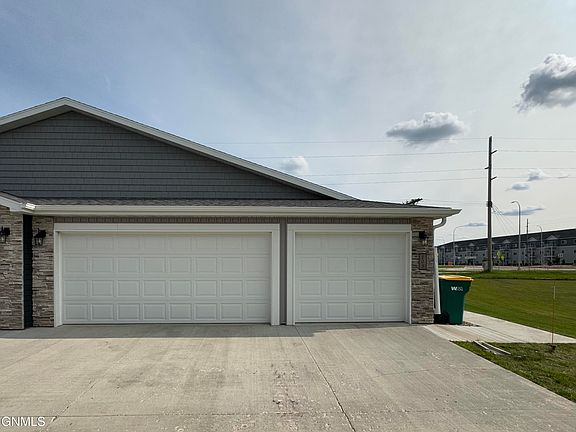 This ONE LEVEL townhome in South Bismarck boasts 1,296 sq ft, 2 Bedrooms, 2 Bathrooms, and a 3 Stall Garage!! Enter inside and be greeted by an open-concept layout, with a 10' Ceiling that seamlessly blends the kitchen, dining and living room. The kitchen features Quartz Countertops, Stainless Steel Appliances and a Large Island. Vinyl Plank flooring is throughout the home with Carpet in the bedrooms and closets. The 3 panel patio door in the living room brings in an abundance of natural light and takes you to the covered patio. The Primary Bedroom has a coffered ceiling and the ensuite has a large Walk-In Closet and a 5' Walk-in Shower. On the other side of the home is a Full Bathroom with a tall linen cabinet for extra storage and a Second Bedroom. Down the hall is the mudroom with a coat closet, separate Laundry Room with shelving and the Mechanical Room. The 3 Stall Garage is Heated, with Hot/Cold Water and a Floor Drain. Call your Favorite Realtor today to ''Address Your Future''!