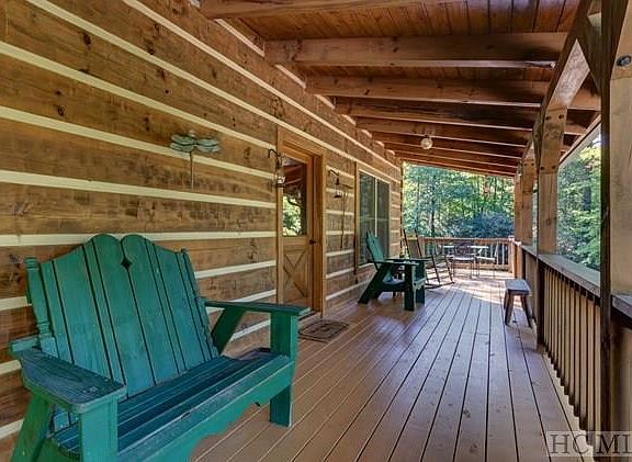 There is an energy in Horse Cove like none other. As you drive the 4 miles from Highlands' Main Street, the scenery shifts to gorgeous meadows and the majesty of Black Rock Mountain. Situated at the end of a quiet drive, this log cabin offers the nearly impossible: easy access to town, yet all the privacy and peace you could seek. Immaculate and well maintained, the 2BR/2BA home offers a stunning, stone, wood-burning fireplace; hardwood flooring; vaulted ceilings; sleeping loft or office area; stone grilling patio; fire pit with stone benches; fencing with an arbor; generator; storage shed; and a rocking chair front porch. You'll enjoy winter, ridge-line views on 1.35 +/- acres and the quiet sanctuary setting afforded by adjoining USFS land. Plenty of parking area for guests, too! Furnishings and decorative accessories (some exclusions) may be purchased separately for $12,500.