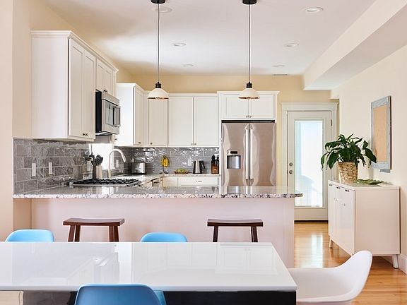 Set on a leafy street, just three blocks from Ball Square shops/new Green Line T stop & Minuteman Bike Path and less than half a mile to Davis Square/Red Line T stop, 103 Kidder Ave unites residential calm with a dynamic urban lifestyle. Gut renovated in 2016, the main level of this light-filled, upper 3-bed, 2.5-bath duplex features a generous open floor plan with separate but fluent living, dining and kitchen spaces, two private decks, a half bath and a cozy gas fireplace. The top level features three spacious bedrooms and two bathrooms, including the primary with en-suite bathroom and walk-in closet. Private entry with two spacious coat closets, extra private storage, in-unit laundry, convenient off-street parking. Enjoy the outdoors in your shared yard or neighboring Powderhouse Park & Trum Field. Close to bustling Davis Square where live music, candlepin bowling, an old-fashioned butcher, craft beer, and the city's best rib joint are just a few of the urban delights to be had.