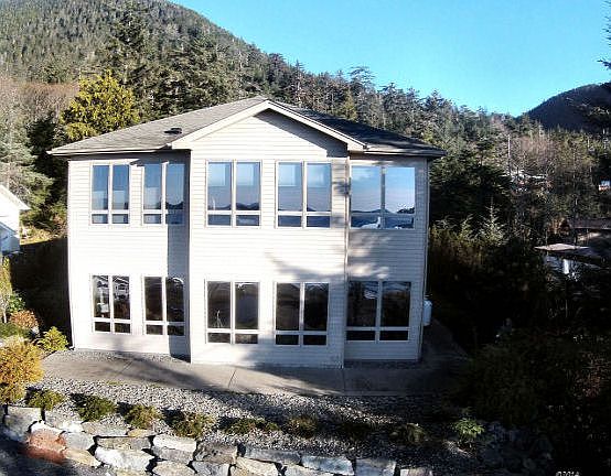 Custom built home with quality finishes and excellent unobstructed views of the Pacific Ocean and Mt. Edgecumbe. Layout is user friendly with a two-story open foyer, ceramic tiled in-floor radiant heat, 10' ceilings and windows everywhere to let in the light. The main level boasts a large living room, dining area and sitting area. Other features are: custom cabinetry throughout the home, special light fixtures, engineered quartz counter-tops, walk-in closets, concrete and slate walkways around the perimeter of the home, high-end appliances and spacious mudroom . Upstairs is the master bedroom suite with a tub and shower designed to take full advantage of the view. Two more bedrooms share a double-sink bathroom and an extra room to be used as a den, sewing room or TV room. The landscaping is complete with a fire pit, the perfect amount of gardening area and beautiful lawn just waiting for you to enjoy those Sitka summer nights.