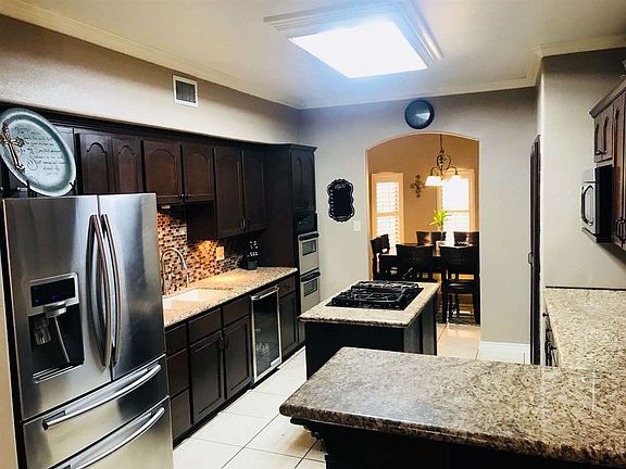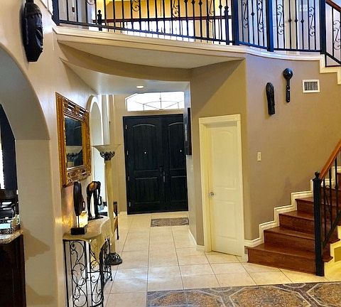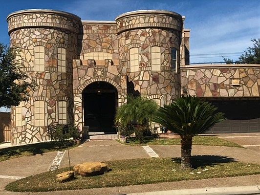 This unique, home welcomes you with accent niches, and an arched doorway leading to the dinning room. Several rooms feature rounded walls for an elegant touch. The curved spiral staircase provides a fabulous aerial view of the living room. Decorative inlayed custom tile work compliments this fabulous Castle Style Home. A spiral staircase off the cabana takes you upstairs to a very large balcony with an amazing view of the city. Lake Access Privileges are a bonus to living in this subdivision!