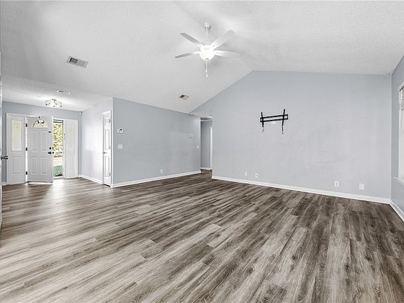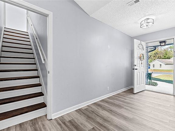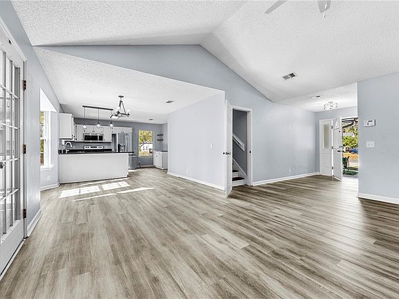 Charming 5 bedroom 3.5 bath home in popular neighborhood, offering incredible potential for the right buyer! The foyer entry leads to a spacious living room with vaulted ceiling that's open to the dining room and fully equipped kitchen featuring stainless steel appliances, updated light fixtures and granite counters. To the left of the living room are 2 guest bedrooms that share a hall bath and the owner's bedroom with ensuite. The owner's suite has a tray ceiling and leads to a large private bathroom with deep tub, separate shower, walk-in closet and linen closet. Upstairs are two more bedrooms, one has a private half bath. On the back of the home, cooled by window unit AC, is a large bonus area, adding an additional 450 +/- square feet of space, divided into a foyer, long living/den area, office space plus a bathroom with fully tiled shower. The fenced back yard has an expansive concrete patio, perfect for sports play, grilling, adding a carport, etc. While there have been some trendy updates, TLC is still needed. This house is just waiting for a handy home owner to make it their own. Centrally located near daycare, elementary, middle school, high school and college and just 3-5 minutes to Interstate, restaurants and shopping galore!