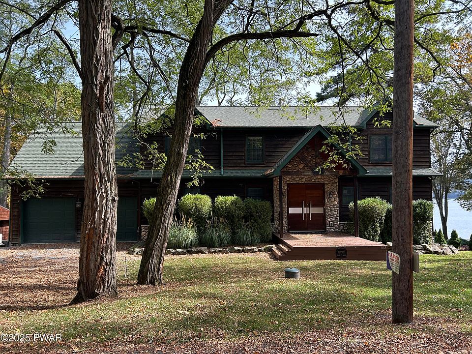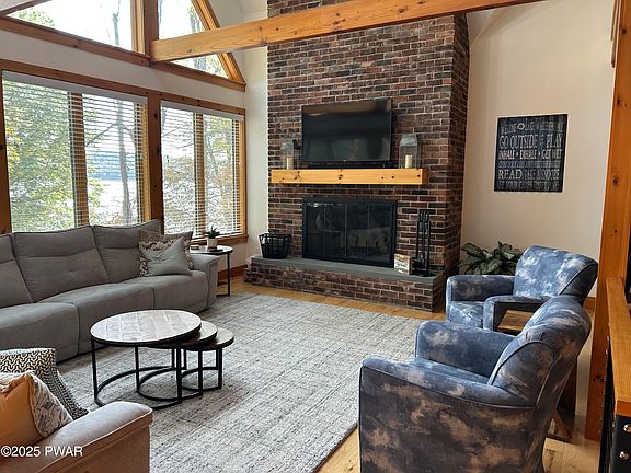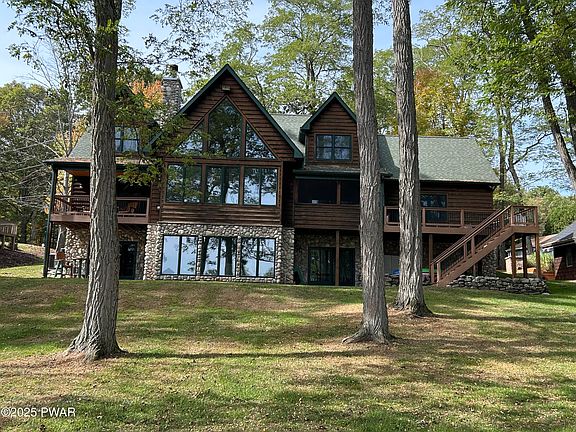 Exquisite Level Lakefront on beautiful Lake Wallenpaupack located in the Sandy Shore Community....Featuring an open concept floor plan with 4 bedrooms including 2 primary suites, 4 1/2 bathrooms, spacious bonus Room and a full finished lower level, 2 fireplaces and a 2 car garage. Property also features a Generator, Dock and Swim Platform and too many extras to list! This property is Move in Ready!!