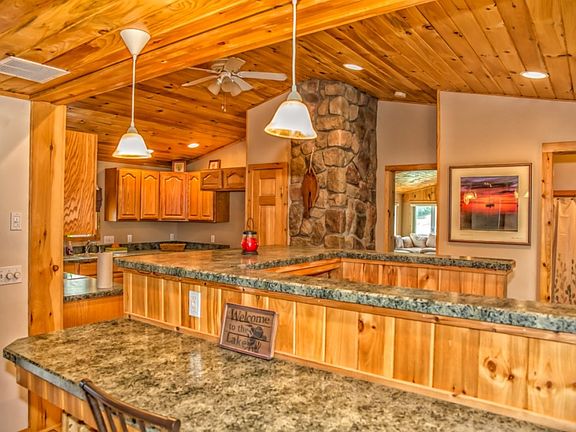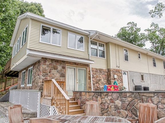 Stunning waterfront cottage with incredible views of north pond. Newer roof, windows & siding in this darling home that offers huge open floor plan with vaulted wood ceilings. Picturesque views from the livingroom and deck perfect for entertaining. Plus a concrete patio sits right on the water. Partially finished walk out basement with 2nd full bath. Newer heating system and central air. This home is move in ready with room for a garage and is the perfect combination with no flood insurance and very few stairs to the water. This home will not last at only $359,900!!