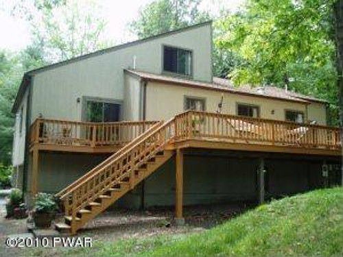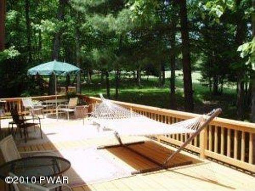 NESTLED ON THE 4th FAIRWAY is this extraordinary 4 bed 3 bath home. Recently remodeled with all the finest extra's you would come to expect. Such a beautiful custom cabinetry, gorgeous GRANITE COUTERTOPS complete with breakfast bar, STAINLESS STEEL appliances, gleaming hardwood flooring, well thought out open floor plan, recently updated bathroom fixtures, LARGE MASTER SUITE with deep WHIRLPOOL tub, a finished lower level and a large two car garage! Did I mention the oversized deck for entertaining overlooking prestigious Paupack Hills golf course? This house if "FORE" you!