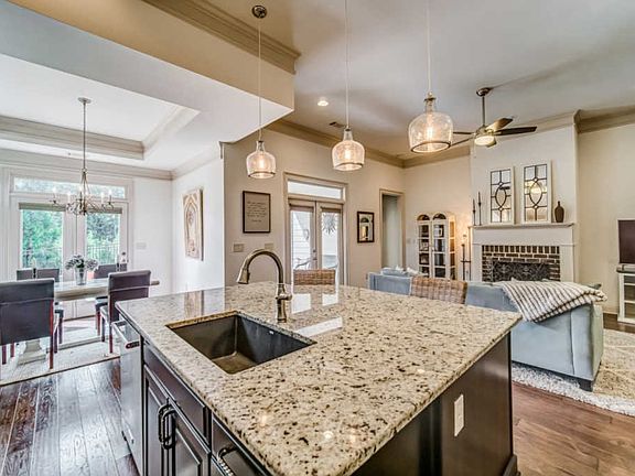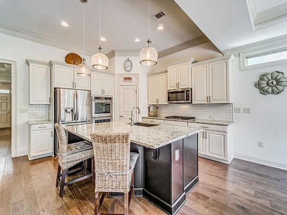 • Kitchen Features: Eat-in Kitchen, Pantry, View to Family Room, Stone Counters, Kitchen Island, Cabinets White