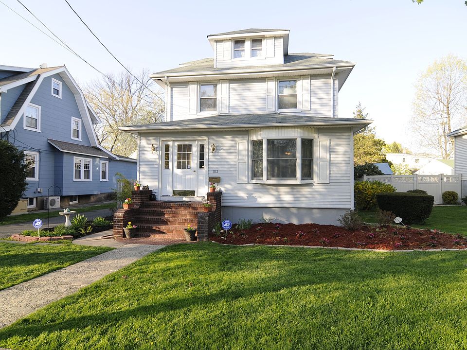 Larger than it appears! 4 Bedroom Maywood Charmer! Newly refinished gleaming hardwood floors this March! Large entrance foyer leads to an open 1st flr layout, which includes Liv Rm with bookshelves, dining room, large kitchen with extra amount of cabinets and countertop space, and a cozy front Den to relax with a book and put your feet up! In addition, there is a 1st flr master suite with master bathrm. If not needed, it could be a family room with full bath access. Great options. Upstairs to 3 standard bedrms, full bath, and walk up stairs to a large attic with floorboards for excellent storage! The basement also is large & open, and waiting to be finished! It even has a 1/4 bathroom down there that could be made a full bath or updated powder rm. Long driveway to a large garage, and a great fenced backyard for Spring Barbecues & Outdoor fun! All this on a great street in the desirable town of Maywood!