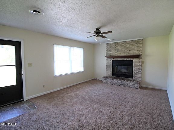 Great 3 bedroom 2 full bath, one-story, brick home. Located on a cul-de-sac in quiet and established community. Open concept living with brick fireplace. Kitchen has nice size pantry and wood cabinetry. Dining area has sliding doors that lead to a large patio and a fenced backyard - perfect for the kids and pets! Conveniently located in Havelock near shopping, beaches, and Cherry Point Air Base. This home is perfect for someone wanting to downsize or a first time buyer.