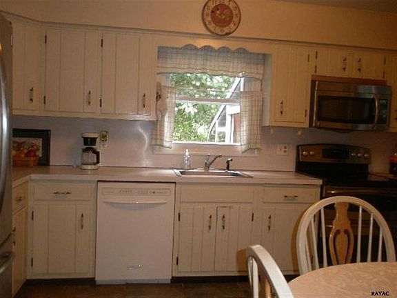 Great location for this raised rancher in Dallastown Schools. Close to I83, hospital & shopping. 3 bedrooms, 2 updated full baths and remodeled family room with a corner brick gas log fireplace with hearth. Hardwood floors throughout 2nd fl. Newer roof, siding, central air, water heater, windows & garage door w/keyless entry. Large fenced rear yard and shed.