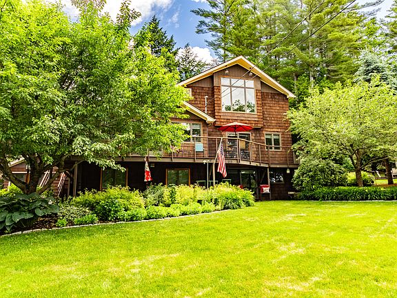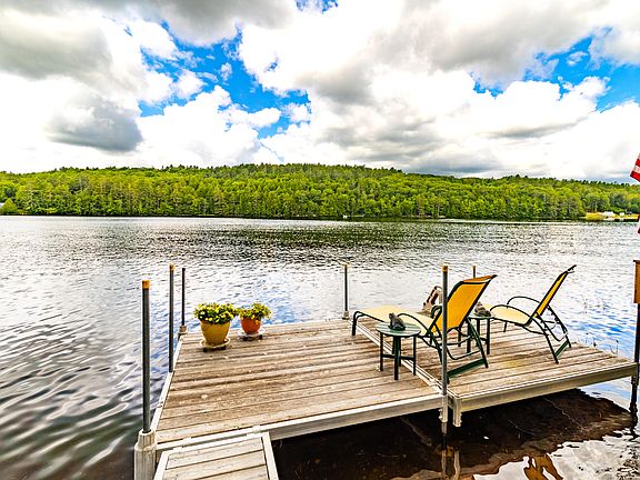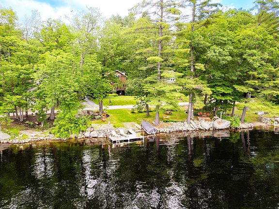 Vacation every day at home in this one of a kind, year-round home on Little Wilson Pond! This home has many custom features and amenities that are all cared for with a meticulous pride of ownership. The main house was built in 1984 with large addition added 1998. The magnificent master suite with cathedral ceiling and stone fireplace offers a solar skylight and extra large windows with remote control shades that add to the outdoor feeling. A wrap around deck offers a perfect spot for your morning coffee. The private master bath features a soaking tub, heated towel bars and a spacious tile shower for ultimate comfort. This home has 2 stone fireplaces and a cozy family room with a woodstove stove for those cold winter nights. Enjoy west facing water & local views with beautiful sunsets year round. The detached garage serves as car storage or spacious workshop space while the garage under makes for easy access to living space. Both garages are heated! Hard wired propane generator and many many new updates and special features.
