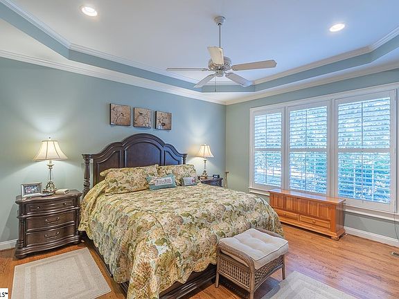 Move-in ready dream home in the desirable Westchester subdivision of Easley, where elegance and amenities meet! This immaculate residence boasts over 2700 sqft +/- of exquisite living space spread over one level with an upstairs bonus room that could easily serve as a fourth bedroom. Situated on a spacious corner lot, this charming home features a grand circular drive leading to the custom carriage house garage door, a testament to the thoughtful investments made in its design and upkeep. As you step through the front door, you will be greeted by an open foyer flooded with natural light. To the right, a sophisticated and open dining room awaits, while to the left, a private office with French doors offers a quiet workspace. Gleaming hardwood floors with Brazilian cherry accents adorn the main level, complemented by intricate wide crown molding and elegant wainscoting. The Great Room is a masterpiece with its 10'+ vaulted ceilings, built-in surround sound and lighting, and a gas log fireplace framed by a French-inspired surround. This inviting space seamlessly transitions to a spacious breakfast area designed to feel like a sunroom, featuring floor-to-ceiling glass windows that offer picturesque views of the gorgeous backyard. From here, a glass door opens to a 19x12 newly constructed screened porch and deck. The kitchen, adjacent to the breakfast room, is a chef's delight with its generous custom cabinetry, dark granite countertops, a built in desk space, and a convenient island with electrical outlets. All the bedrooms are conveniently located on the main floor, each adorned with plantation shutters. The primary bedroom, situated on one side of the home, boasts trey ceilings, a spacious walk-in closet, and a newly renovated full bath with dual sinks, a vanity area, a soaking tub, and a custom-tiled walk-in shower with a wide entry to accommodate wheelchair access if required. No expense was spared on this luxurious addition built by Dunn Custom Builders. All bathrooms in the home have been thoughtfully renovated with granite and marble countertops, along with updated light fixtures. The two additional bedrooms are equally spacious, bright, and feature ample closet space. Upstairs, a bonus room with skylights awaits, complete with a built-in desk, drawer space, cabinets, and easy walk-in access to the large floored attic, providing ample storage options. The backyard is a private oasis, meticulously maintained, with wooded areas that enhance your sense of tranquility and privacy. The quality of construction is evident throughout the home, showcasing high-end materials built to last. A tankless hot water heater, gas fireplace wall switch, and front yard lighting top off this wonderful home. The Westchester subdivision offers an array of amenities, including a clubhouse, an Olympic-sized pool, and tennis courts for your enjoyment. Perfectly located between Powdersville and Easley, and less than 20 minutes from the heart of downtown Greenville, this home offers convenience and luxury in one. Don't miss this opportunity to make it yours!