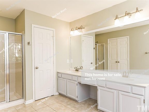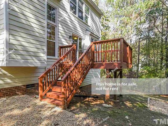 This Cary two-story cul-de-sac home offers a deck, hardwood flooring, a fireplace, kitchen granite countertops, master bathroom sitting vanity, and a two-car garage.