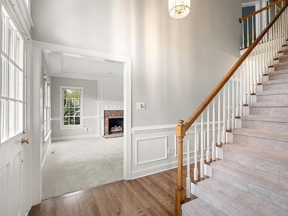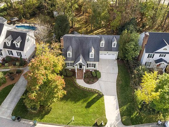 Welcome to this gorgeous Cape Cod home, a former Parade of Homes model, situated on a private 1/3 of an acre lot in a desirable and quaint West Cary neighborhood! Cozy yet spacious, this home boasts an incredibly functional floorplan. The 1st floor owner’s suite has a large bathroom and walk-in closet. Custom trim on the 1st floor includes crown molding, chair rail and shadow box wainscoting. The kitchen has white 42 inch cabinets, granite countertops and an island. The breakfast nook has a bay window w/ a great view of the backyard. The formal dining room & living room have tray ceilings. There's a gas log fireplace in the living room. The freshly painted walls are complimented beautifully by the stunning solid oak hardwood floors & there's new carpet throughout. Three large secondary bedrooms and a massive 35 foot long bonus room are on the 2nd floor – tons of potential! Large backyard with mature trees, private with an oversized concrete patio – low maintenance and perfect for entertaining! Wonderful location, phenomenal schools, easy commute to RTP, RDU Airport & other areas of the Triangle – minutes from 540.