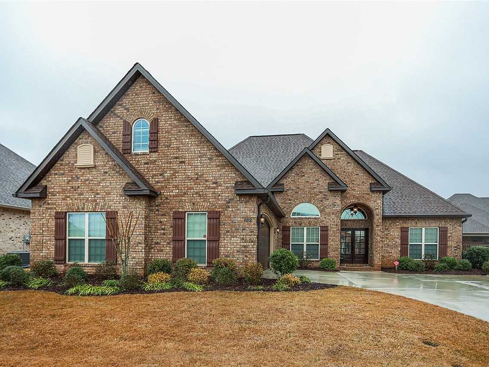 Gorgeous all-brick home with 4 bedrooms and 3 baths on a cul-de-sac lot,built by Custom Homes by Jeff.Enter through the beautiful wood front doors and you'll enjoy features such as engineered hardwood floors,formal dining,granite countertops, island and custom cabinets in kitchen.Split bedroom plan down with guest/4th bedroom upstairs with en-suite.Owners suite is enhanced with jacuzzi tub,stone shower and spacious walk-in closet.Exterior astounds with fenced backyard,covered porch, gutter and sidewalks.