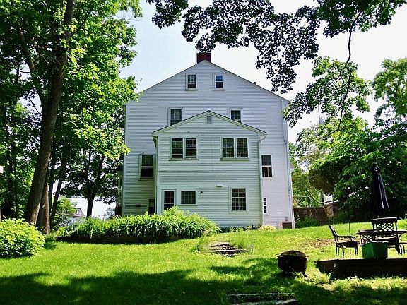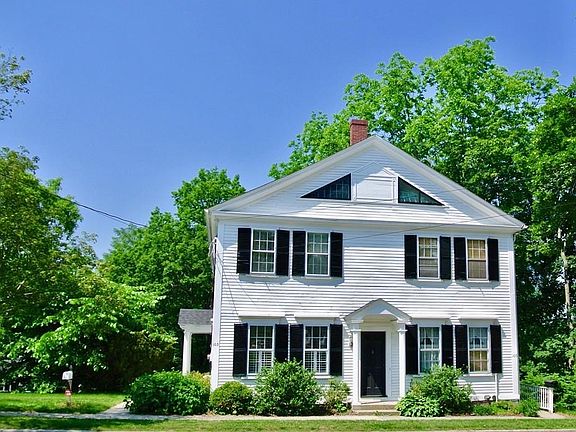 Step into the historic 1850 George Wheatley House, the left side townhouse of a spacious and well maintained duplex in Groton Center. Classic details, wide pine floors, high ceilings and detailed moldings. Start with a mudroom to house all those shoes and briefcases. Many recent updates to include a kitchen just renovated with new stainless appliances, Bosch cooktop, LG frig and dishwasher, and Frigidaire oven and broiler. Laminate flooring, moveable island and a hightop table to remain. Next level up living room and study to the back with a bedroom to the front or family room possible too, both rooms at street level. Next level going up 2 bedrooms and a full bath. Most rooms with a fresh coat of paint. On the fourth floor beyond the triangular windows are 2 attics rooms great for 2 more bedrooms or attic storage. Outside a long lawn to enjoy the outdoors, or stroll to the library just next door. Head up the street to the bakery, bagel shop or bank, school and churches.