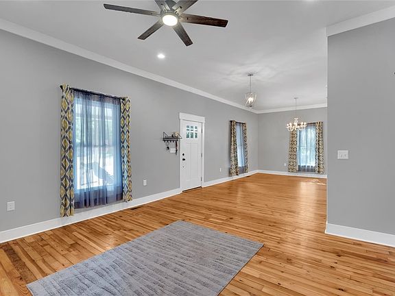 This updated cottage-style home offers over 2,000 square feet of thoughtfully designed living space. This 3-bedroom, 2.5-bathroom gem features stunning lighting, 10-ft ceilings in the living areas and master bedroom, and rich hardwood floors throughout, making it a true standout. On the main level, you'll find a spacious master suite complete with a large walk-in closet and a spacious en-suite bathroom featuring double sinks. Upstairs, two additional bedrooms share a Jack and Jill bathroom, also with double sinks, plus a charming nook perfect for reading or working from home. The home’s unique character shines through with its shiplap ceilings, accent walls, and open rail staircase. The modern kitchen boasts beautiful granite countertops, a large island, under-cabinet lighting, and stainless steel appliances, making it the perfect space for cooking and entertaining. Step outside and enjoy the peaceful surroundings from either the sizeable deck out back or the welcoming front porch. Sitting on nearly a half-acre flat lot, this home provides the privacy and space you're looking for, with plenty of room to relax or entertain. This home was completely renovated just five years ago with all-new electrical, windows, plumbing, ductwork, roof, siding, and a hot water heater, giving you the feel of a brand-new home with the charm of a timeless cottage. If you’re looking for a home that combines modern amenities with unique charm, while offering plenty of privacy and space, this is a must-see!