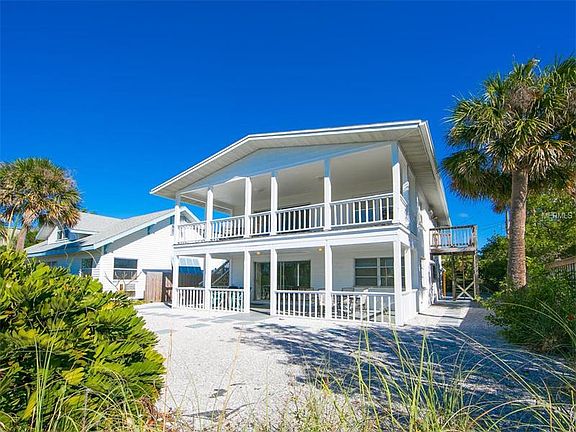 This traditional beach front bungalow has wonderful Gulf views from the upstairs covered, open porch! This old Florida charmer has a total of four bedrooms two full and two half baths total, but is currently a duplex with two bedroom one and a half bath in each unit. Ready to renovate or build your dream home on this rare find.