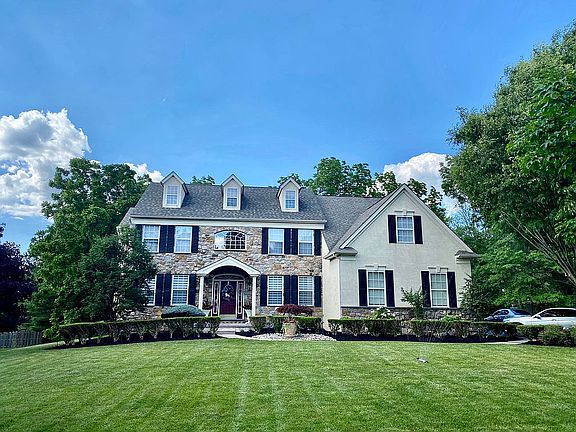 Curb Appeal and Sought-after Holly Manor Community! Architecturally attractive stone front Colonial w/ peaked roof lines, covered entry w/ a setting of mature treed and professionally landscaped homesite. 2sty balcony h/w Foyer w/ palladium and elliptical windows. Formal Liv and Din Rms enhanced w/ crown moldings and open and flowing together - perfect for entertaining. Tucked away 1st flr Den/Study/Office. Fam/Great Rm offers causal and informal living space, 2sty vaulted ceiling adds volume to living space, wood burning F/P fitted w/ gas logs, flr to ceiling stone face and mantel and flanked on either side by circle top windows. Bkfst Rm for casual gathering and meals w/ h/w opens to the Fam/Great Rm and the gourmet Kit. Gourmet h/w Island Kit w/ double bowl sink, hi-hat recessed lighting and recipe desk top. Wet bar out cove just off the Fam Rm, centrally located and convenient, offers stooled bar top, wine rack, built-in cabinetry and under-counter refrig. Rear informal entry and Mud/Laundry Rm w/ stationary tub and overhead cabinet storage. Grand tee-style oak staircase offers 2nd flr access from both formal and informal living areas, a focal point in the entry Foyer and the 2nd flr landing overlook to the 1st flr entry and Fam Rm. Master Suite is a "Sweet Retreat." Grand double door entry to a coffered ceiling, accented w/ overhead ceiling fan, coffered tray ceiling Sitting Area. Master Bath w/ cathedral ceiling offers platform soaking tub, walk-in stall shower, double bowl and make-up vanity, CT flring and hi hat recessed lighting. Triple walk-in closets. 3 add'l Bedrms- Jack Jill Bath and Hall bath. All secondary Baths offer vanities and CT in tub areas and flr. 9' 1st flr ceilings. 1st flr Power Rm. Fire, Smoke, and Security System w/ central monitoring. Finished Lower Level of Sanctuary living area is perfect escape - recreation space, workout area and siting and TV area. 3 oversized car side-entry Garage finished and dry walled with auto openers. Energy efficient and comfort living of a geo thermal HVAC system provides year around climate control comfort of heat and central A/C. Outdoor living doesn't get any better! A raised deck just off the Brkfst Rm slider ideal for entertainment or just fire-up the BBQ! House needs a little TLC and is priced accordingly! Montgomery Twp offers open space, ball fields, walking trails, tennis and basketball courts and playgrounds. Train to center city or Doylestown, Downtown shopping, Dining, Malls, Schools, Network of major highways and Cedars and Skippack are all close by!