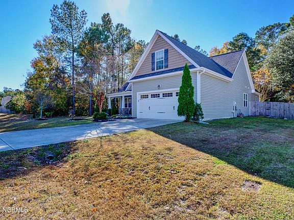 The Unicorn! ! A beautiful home on a quiet street, with great outdoor space, close to the ICW and water access, an in-law suite with a full bathroom, kitchenette, and separate access ''through the garage.'' Allowing a parent, teen, or roommate to have direct access to this extra area, without having them wake you up all hours of the night. This property honestly has a little something for everyone. A large kitchen with tall ceilings, a fireplace for our cold season, a large screened in back porch for the majority of our seasons, a spacious, fenced in, back yard with mature trees, not the young ones found in every new development, 2 car garage, and the desired privacy we all want for our HOME. The primary bedroom boasts a large walk-in closet, and beams with natural light. While the primary bathroom has a soaking tub as well as a stand-up shower paired with a double vanity. The vaulted ceilings, and stone fireplace in the living room create the ambiance often sought after for a grand entrance into a home. This perfectly nestled home is only 15 minutes away from Topsail Island/Surf City, and all your shopping needs are less than 10 minutes away. This is truly a rare property in our area, especially at this price point.