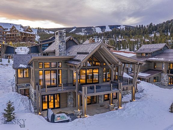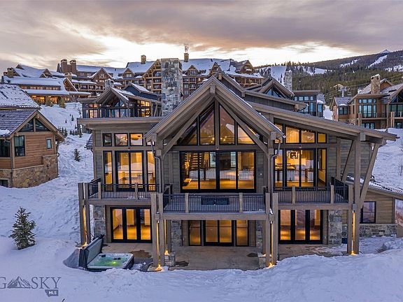 Experience unparalleled luxury and convenience in this stunning mountain retreat, perfectly positioned with ski-in/ski-out access and breathtaking views of the 1st fairway of the Tom Weiskopf Championship Golf Course. Located directly across from Montage Big Sky, this home provides an extraordinary living experience with seamless access to world-class amenities, including in-house dining, daily housekeeping, and exclusive benefits of the Spanish Peaks Mountain Club. Designed to embody the essence of classic Montana elegance, the Mountain Homes feature towering timber beams, natural wood finishes, and expansive living spaces highlighted by grand wood fireplaces on both the main and lower levels. The master suite includes a gas fireplace and vaulted ceilings, creating a serene, spacious atmosphere. An additional outdoor fireplace on the deck and a hot tub on the lower-level patio invite relaxation and provide perfect spaces for entertaining. Enjoy direct access to ski-in/ski-out access via the Cabin Lift from your private ski room with a sauna. With Montage Big Sky, the Spanish Peaks Mountain Club Clubhouse, the Tom Weiskopf Golf Course and driving range, and scenic hiking trails just steps away, this home offers the ultimate mountain lifestyle. A Signature Golf Membership is available, and a membership (Signature Golf or Social) is required with the purchase. Membership dues are in addition to the HOA dues and fees. Residents also enjoy preferred access and exclusive discounts at Montage Big Sky, making this property the perfect blend of luxury, convenience, and outdoor adventure.
