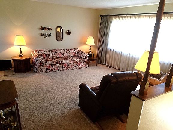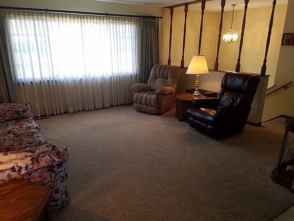This is a terrific family home on a sprawling DOUBLE LOT, .78 acres with a stunning view of the country side. The main level has a large living room, three bedrooms each with large closets, one full bathroom, one 3/4 bathroom, and open modern kitchen with recessed lighting with plenty of floor space for the dining room table. Adjacent to the kitchen, you can walk through patio doors to a spacious deck with an unbeatable view. The lower level's open floor plan also has doors to walk out to a concrete patio perfect for grilling. The lower level also has a gas fireplace, 4th conforming bedroom, 3/4 bathroom, laundry room and several storage closets. This home has an attached double stall garage with storage space and a bonus garage (cement floor & electricity), in the back. House: main lvl 1,196 sq. ft. + lower lvl 1,196 sq. ft = 2,392 total sq. ft.!