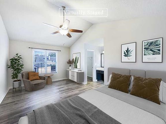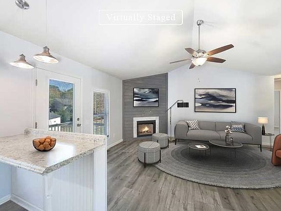 Fantastic home in sought after location! A standout feature is the quaint breakfast nook with a window bench seat, the perfect place to enjoy a meal. Discover a bright and open interior with plenty of natural light and a neutral color palate, complimented by a fireplace. Step into the kitchen, complete with an eye catching stylish backsplash. Relax in your primary suite with a walk in closet included. Extra bedrooms add nice flex space for your everyday needs. Take advantage of the extended counter space in the primary bathroom complete with double sinks and under sink storage. The back yard is the perfect spot to kick back with the included sitting area. Don't miss this incredible opportunity. This home has been virtually staged to illustrate its potential
