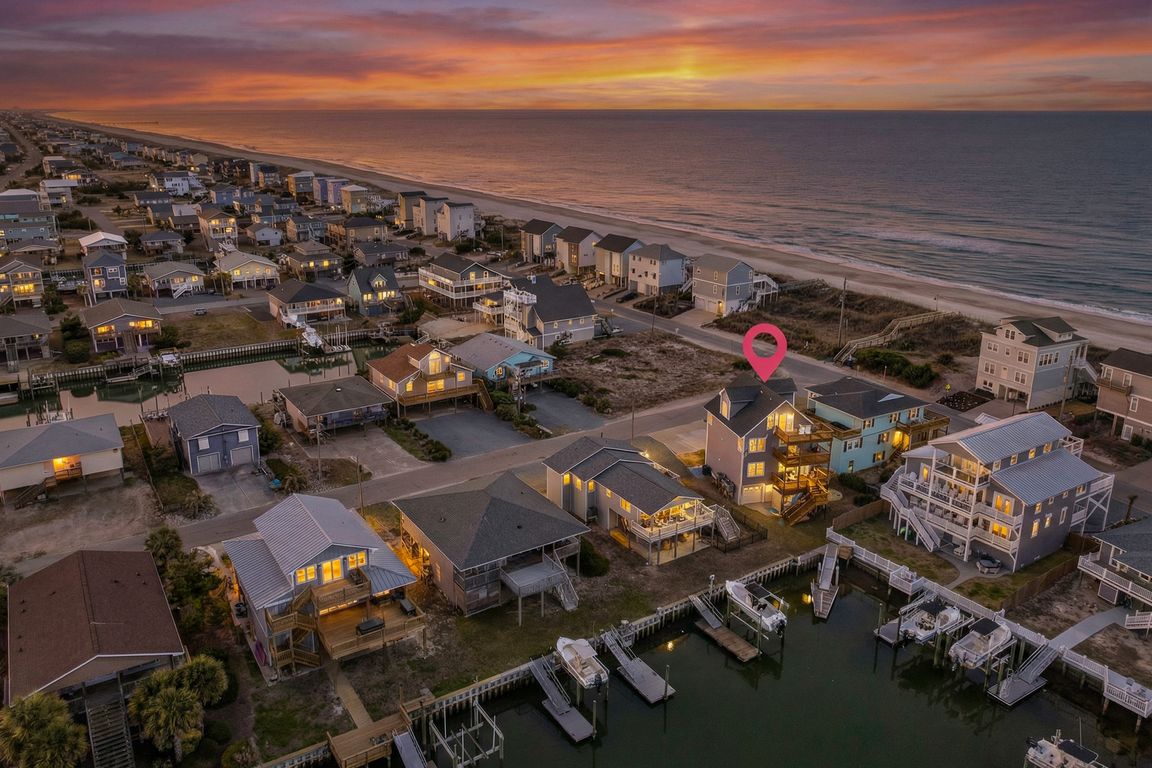 A rare dual-water offering, this canal-front residence is positioned across from Beach Access 19 on the South End of Topsail Beach - placing the Atlantic Ocean at your doorstep and a dock on the canal just beyond the back deck. Begin your mornings with ocean sunrises, spend the afternoon kayaking or ...