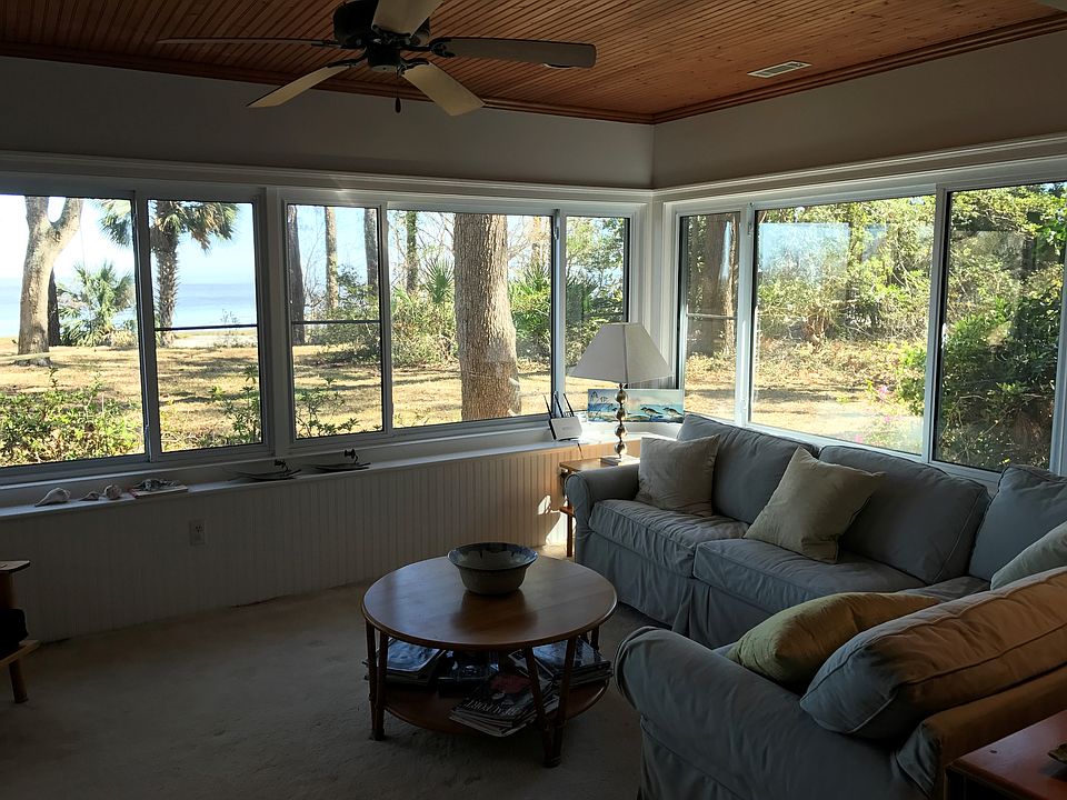 Very homy and cozy ranch with beautiful views of the Atlantic Ocean, Edisto Island, and Harbor Islands. Anyone seeking the tranquility or waterfront, island living will love this home, which sits on almost an acre of property. Although privacy reigns, this home is a short, 25 minute drive to downtown Beaufort.