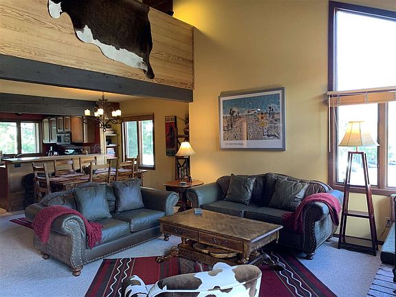 South facing upstairs corner unit with extra windows and views to the Sherwins. Main level offers open plan living/ dining/ kitchen with one bathroom and a large bedroom. Large loft with east facing windows has its own bathroom and closet. Sunrise Condos complex is close to the Mammoth Creek, free shuttle, fishing, biking and all your outdoor activities!