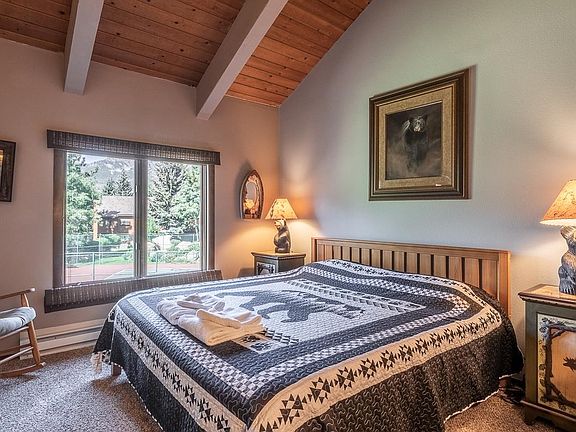 This comfy-cozy one bedroom plus loft, 2-bathroom offers a spacious and functional floorplan with vaulted ceilings and is offered fully furnished. The south-western orientation, and multiple floor-to-ceiling windows, provide sun and warmth all day as well a exceptional views. There are unspoiled views of Mammoth Mt, Mammoth Pass to the Sherwins. The fireplace, chase and wood burning insert were upgraded with custom rock and mantal. They are TOML approved. Other upgrades include wood and tile flooring. The wall-heaters were retrofitted to be wireless so one can control the temperature when out of town. This property is located in the beautiful Mammoth Meadow where access is EZ in the Winter. There are nearby creeks, bike-paths, hiking trails and the Snowcreek Golf Course is nearby. Additionally, Mammoth Creek Park is just a short distance and the condominium is located just a few hundred yards from the convenient "red-line" shuttle stop. Sunrise is a well mantained managed complex and offers a hot-tub, and seasonal pool. This is a great year-round property with amazing rental potential.
