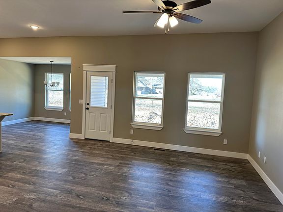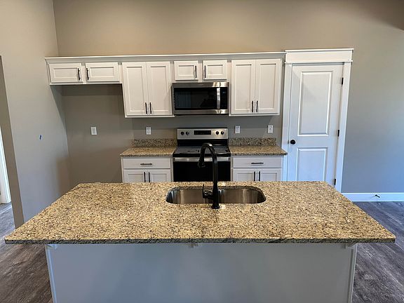 Huge corner lot. New 3 car garage split bedroom plan home with vinyl plank flooring in the kitchen and living areas, large kitchen island, granite countertops, walk-in pantry, raised ceilings, covered patio with a great view and landscaping. More new homes available in this subdivision.