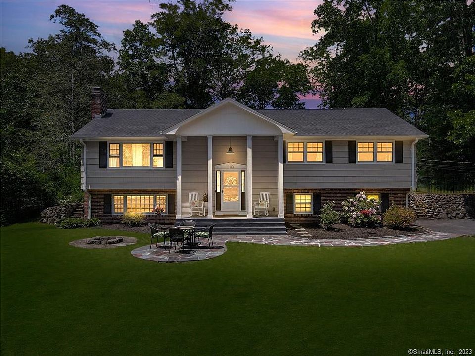 Finally....The home you have been waiting for! From the moment you walk up to the front door of this move in ready, beautiful 3-bedroom 3-bathroom home, you are welcomed by a beautiful front porch, perfect for sitting on those warm summer evenings. As you enter the home, you will immediately notice the wide foyer and beautiful staircase leading to a spacious sunny living room, a gorgeous fireplace, hardwood floors and paint colors todays buyers are looking for. The dining room is open to the kitchen & living room, and large enough to host gatherings or quiet dinners, all while overlooking the lovely back yard through the beautiful bow window. The kitchen has stainless steel appliances, easy care tile floor, beautiful cabinets, granite counters and is large and spacious. The primary bedroom is complete with plenty of closet space, an on-suite bathroom & hardwood floors. The other two bedrooms are bright & sunny with large windows & plenty of closet space as well. The first-floor laundry is ideal for ease of daily living. The lower-level family room boasts a beautiful fireplace, cozy carpet & walk out access complete with a full bathroom, closets & garage access! The private yard is surrounded by beautiful trees & highlighted by stone walls & walkways. This home has a 2nd separate staircase giving access from the garage directly to the main level. Conveniently located near major highways, restaurants, parks & shopping. Well maintained, truly a move in ready home.