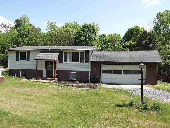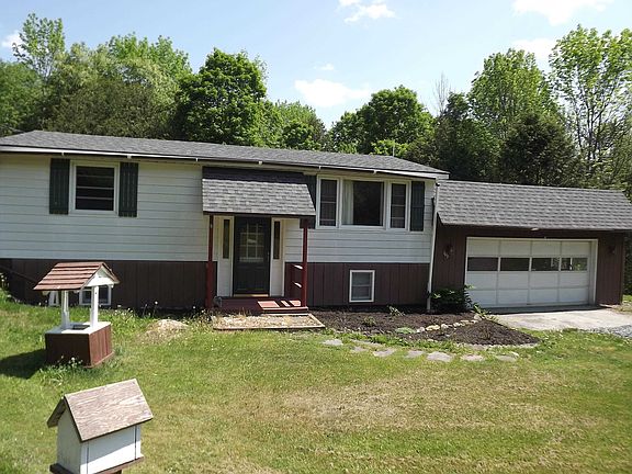 Traditional raised ranch located in country setting. Many new windows throughout and roof replaced in 2019. Modern kitchen with back door to deck. Dining alcove with Harmon pellet stove. 2 bedrooms upstairs with updated bath. Spacious den with bedroom/office in basement with brick hearth and gas "wood" stove. 3/4 bath and large laundry room. Generator included. Full dog fence in backyard with direct entry to garage and/or kitchen. Attached garage for 2 small cars and entry to basement. Showings begin 06/14/2023 at 4:30pm.