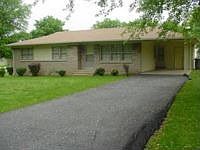 Stone and Aluminum. Ready to move into. Features 3 bedrooms, 1 ceramic bath, living room and largest bdrm have hrd wood. Bedrooms and dining have carpet Kitchen and bath have vinyl. Covered patio and 1 car carport. Kit has lots of cabinetry. Blacktop drive and mature trees all for well under 100,000