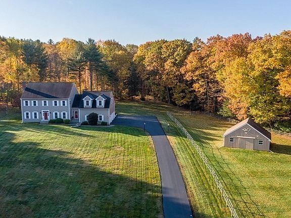 Everything is here you could ever want! Wonderful layout that offers so many options. Sunlit two story foyer. Large Bonus room over the 3-car garage with full bath and wet bar ideal for in-law possibiity or just entertaining! 26 x 24 Barn with water, electric and loft /two stalls. Open kitchen with breakfast nook. Graninte island, pantry, double ovens all open to fireplaced family room. Formal dining with french doors to yard. First floor office or bedroom. Formal living room with second fireplace. Solid hardwoods throughout. Master suite complete with bathroom remodel thats like a five star hotel with heated floors, walk in shower and corner soaking tub. Lets talk about location! So much privacy with access to swim and boat at Moosehill Wildlife area across the street ( see views) Hike, horseback ride or cross country ski on the Midstate Trail steps from your back yard. This is the sanctuary you have been waiting for...