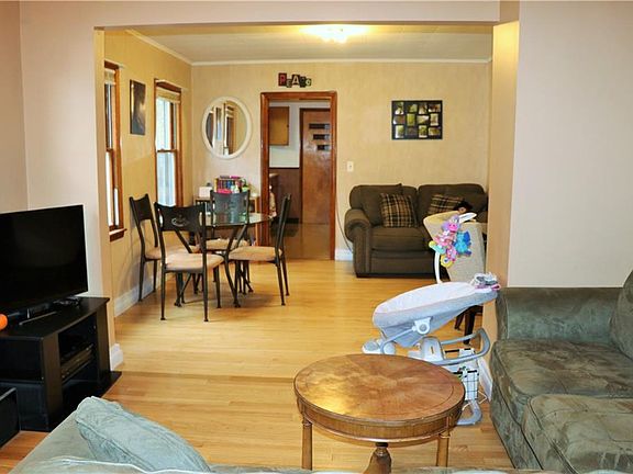 Adorable bungalow close to all conveniences . Features 3 bedrooms possible 4th or office on second floor, 1.5 baths, large open concept living room, dining area, beautiful hardwood floors throughout, spacious kitchen with new shelves and counter, front enclosed porch and back porch to fenced in yard and detached garage, great basement with a lot of potential to create! Newer furnace, hot water tank, new stove, & refrigerator, large attic for storage and so much more! Why pay rent when you can own! Please call and schedule your appointment today!