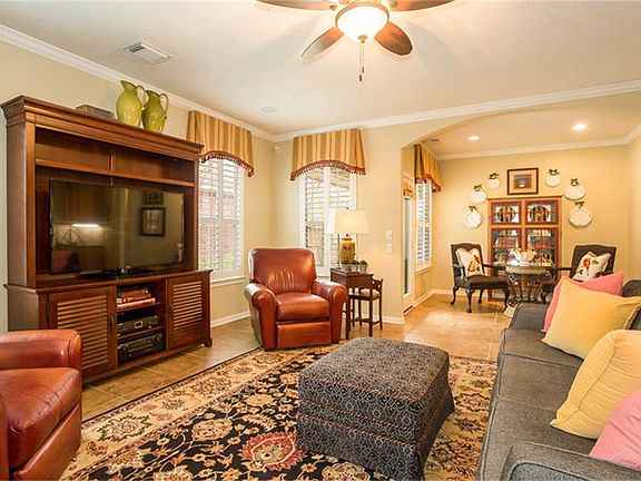 Beautiful one-story patio home in gated 55+ community of Windsor Lakes! 18'' tile, plantation shutters, dining room, and study that easily converts to 3rd bedroom. Island kitchen w/granite counters, walk-in pantry, and convenient planning desk. Sitting area or breakfast nook off den. Spacious master suite features lovely wall of windows; dual sink vanity, jetted tub w/separate shower, walk-in closet in master bath. Partially covered, oversized flagstone patio w/ceiling fans and outdoor speakers!